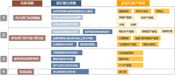 图1:兑现碳中和承诺下的潜在方式与涉及行业/产业链