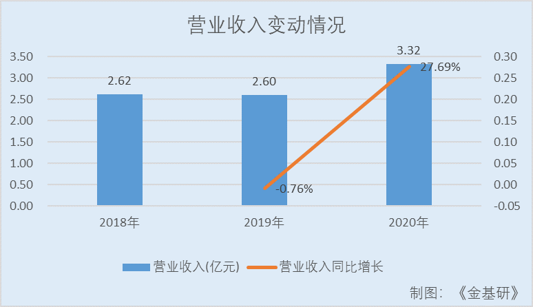 据招股书,2018-2020年,宏微科技的营业收入分别为2.62亿元、2.6亿元、3.32亿元,2019-2020年分别同比增长-1.06%、27.69%。