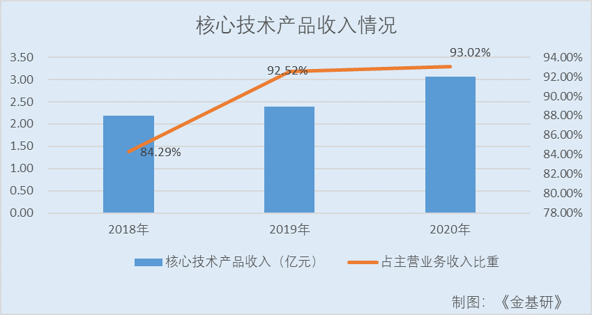 不难看出,宏微科技的核心技术产品收入占营业收入比逐年增高,且近两年占比超九成。
