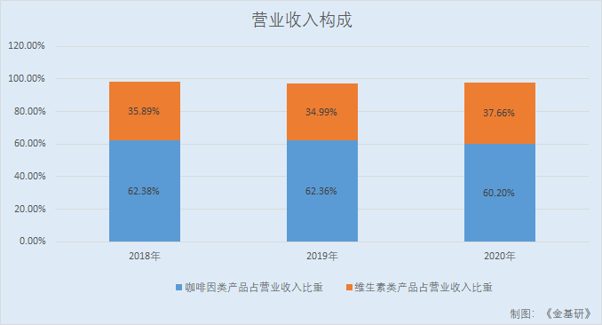 同期,新诺威咖啡因类产品占营业收入比重分别为62.38%、62.36%、60.2%;维生素类产品占营业收入比重分别为35.89%、34.99%、37.66%。