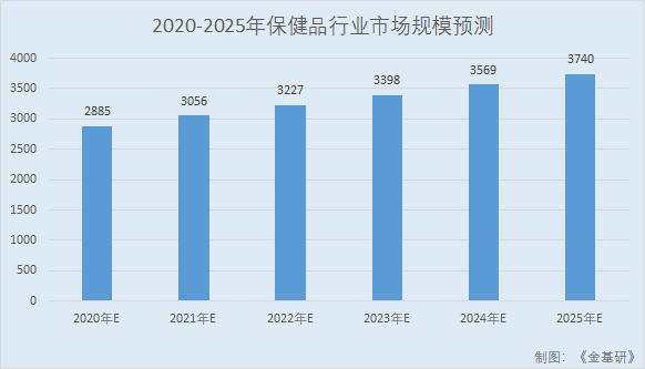 预计在未来五年营养保健品行业增速将至少保持在10%左右,2025年行业市场规模将达到3740亿元。