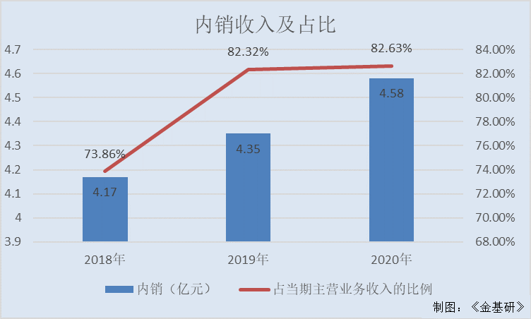 2018-2020年,中旗新材内销收入分别为4.17亿元、4.35亿元和4.58亿元,占当期主营业务收入的比例为73.86%、82.32%和82.63%。