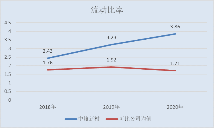 2018-2020年,中旗新材的流动比率分别为2.43倍、3.23倍、3.86倍;同期,可比公司惠达卫浴、海鸥住工、凯伦股份、东方雨虹、本益新材的流动比率均值分别为1.76倍、1.92倍、1.71倍。