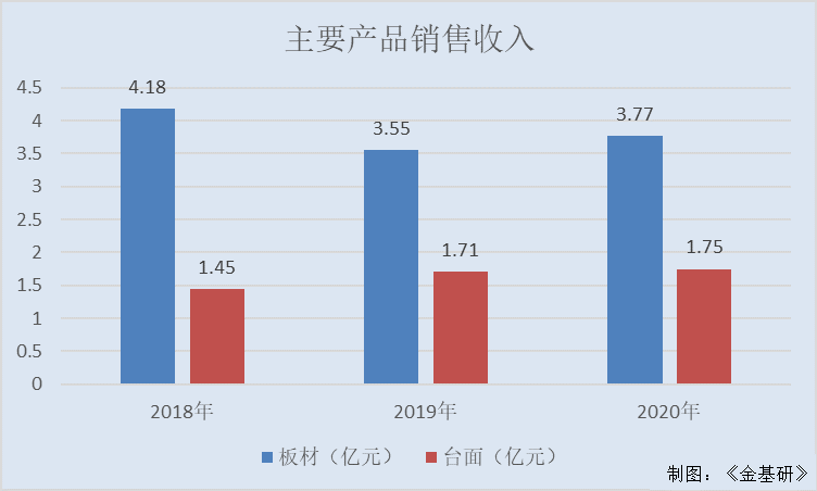 近年来,中旗新材的主营业务包括板材、台面及加工服务,台面由板材加工而成。板材及台面的销售收入占各期主营业务收入比例均超过99%,是中旗新材最主要的收入来源。