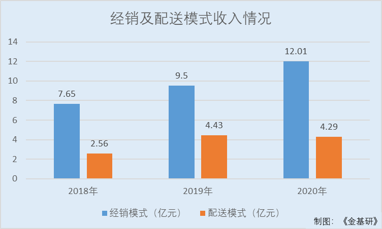 2018-2020年,威高骨科配送模式的收入金额分别为2.56亿元、4.43亿元、4.29亿元,占主营业务收入比例分别达到21.11%、28.18%和23.53%。