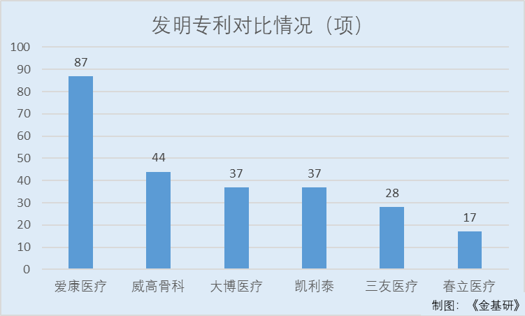 据招股书,截至2021年5月12日,大博医疗发明专利为37项;凯利泰发明专利为37项;三友医疗发明专利为28项;爱康医疗发明专利为87项;春立医疗发明专利为17项,威高骨科的发明专利为44项。