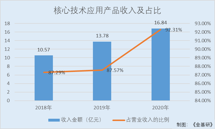2018-2020年,威高骨科核心技术应用的主要产品收入金额分别为10.57亿元、13.78亿元和 16.84亿元,占营业收入的比例分别为87.29%、87.57%和92.31%。