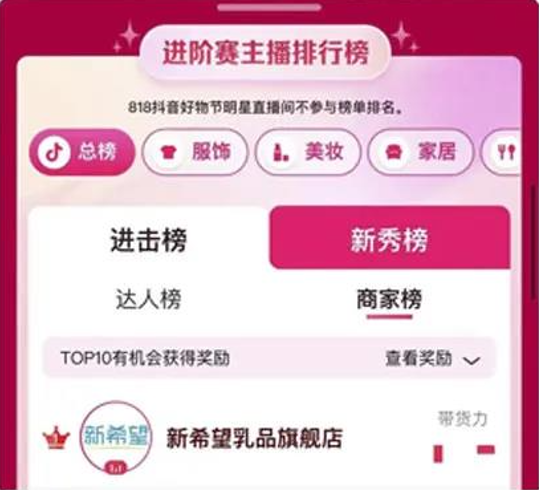 值得一提的是,新乳业获得818抖音好物节商家带货力第一。