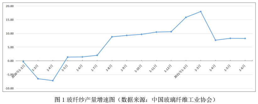 据国家统计局最新数据,2021年1-6 月份,中国玻璃纤维纱总产量比去年同期增长8.18%。