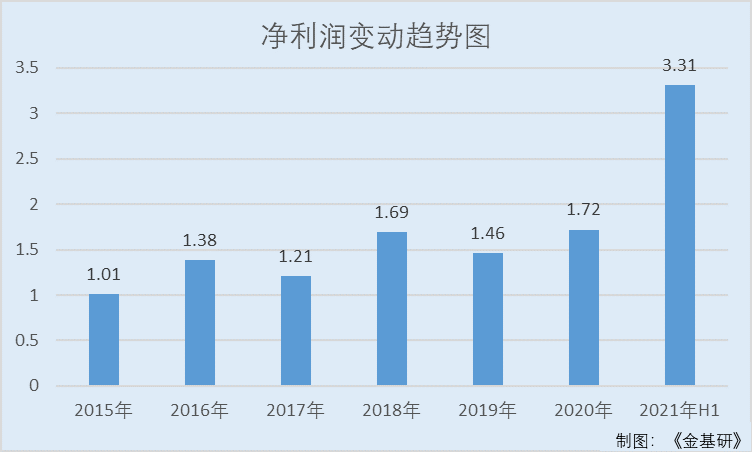 2015-2020年,山东玻纤的归母净利润为1.01亿元、1.38亿元、1.21亿元、1.69亿元、1.46亿元、1.72亿元。