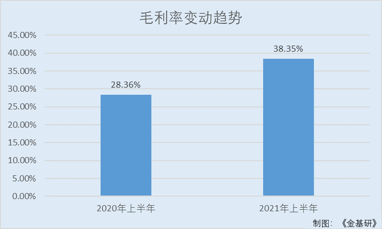 2020年上半年及2021年上半年,山东玻纤的毛利率分别为28.36%、38.35%。