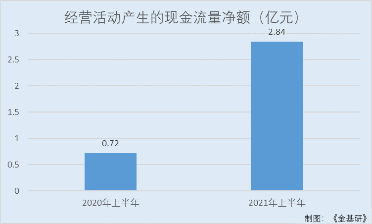 2020年上半年及2021年上半年,山东玻纤经营活动产生的现金流量净额分别为0.72亿元、2.84亿元,同比增长296.07%。