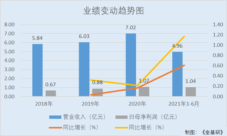 2018-2020年,欧科亿实现营业收入分别为5.84亿元、6.03亿元、7.02亿元,2019-2020年分别同比增长3.26%、16.45%。