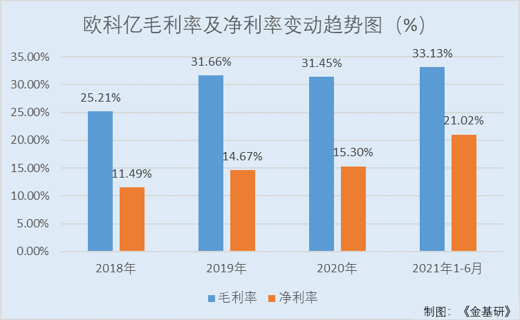 不仅营收净利大幅增长,欧科亿产品也逐步迭代升级,产品结构进一步优化,毛利率稳步上涨。