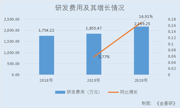 2018-2020年,本立科技的研发费用分别为1,754.22万元、1,855.47万元、2,169.25万元。2019-2020年研发费用分别同比增长5.77%、16.91%。
