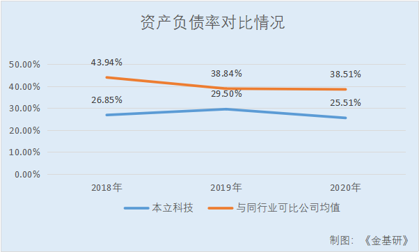 同期,本立科技同行业可比公司的资产负债率均值分别为43.94%、38.84%、38.51%。