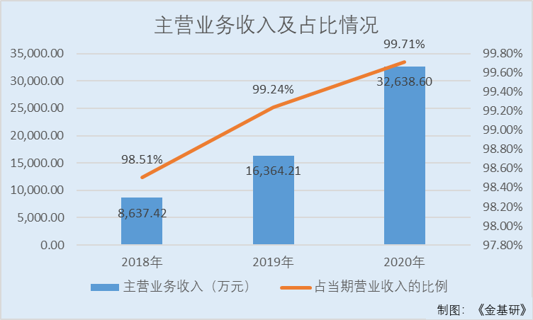 2018-2020年,富吉瑞的主营业务收入分别为8,637.42万元、16,364.21万元、32,638.6万元,占当期营业收入的比例分别为98.51%、99.24%和99.71%,主营业务非常突出。