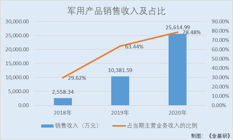 据招股书,富吉瑞称,公司军用产品销售收入及占比增加的主要原因系公司参与配套多家军工总体单位项目逐步定型,并在2019年和2020年持续订货。