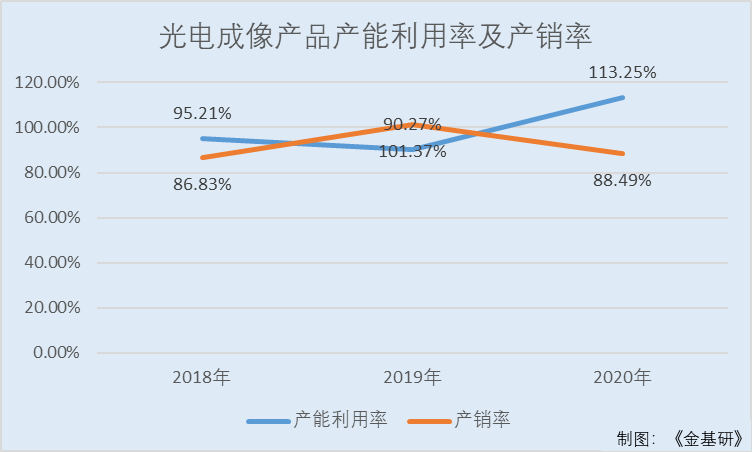 2018-2020年,富吉瑞的光电成像产品产能利用率分别为95.21%、90.27%、113.25%;产销率分别为86.83%、101.37%、88.49%。