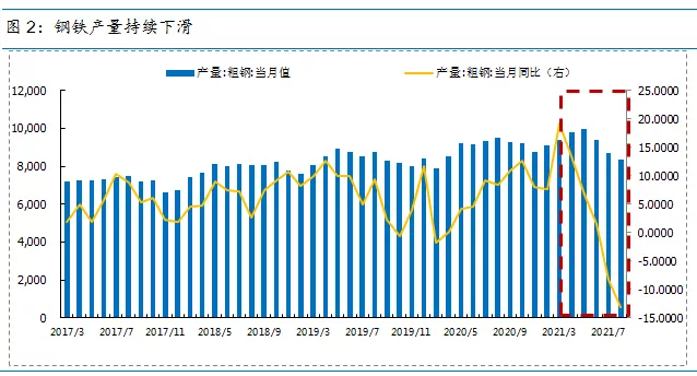 以钢铁为例,受环保督察等政策影响,供给端受限,粗钢产量同比增速自3月以来持续下降,即使整体宏观经济有边际放缓,需求略微减少,但钢铁产量大幅下降也使得供需缺口迅速扩大,从而带动了钢铁价格上涨,并使得钢铁行业表现较佳。