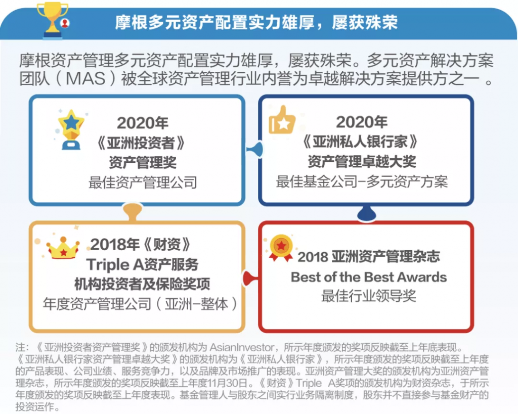 杜习杰:摩根资产管理拥有2.3万亿美元规模的资产管理经验,在多元资产配置领域的经验尤为丰富,实力雄厚。摩根多元资产解决方案团队(MAS)被全球资产管理行业誉为卓越解决方案提供方之一。