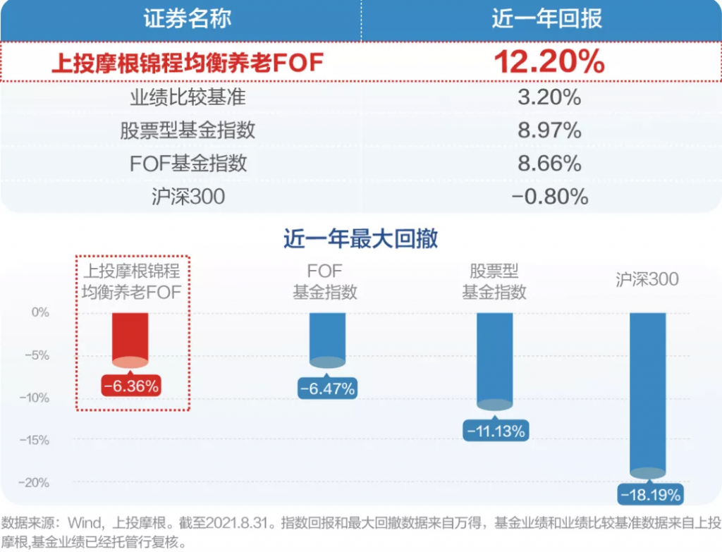 除了业绩过硬以外,上投摩根锦程养老FOF系列还非常重视风险控制。例如,上投摩根锦程均衡养老FOF近一年的最大回撤低于市场主要指数,收益却超越股票型基金指数,给投资人带来了较好的持有体验。