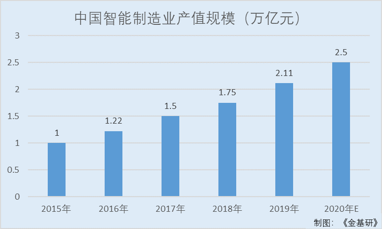 随着国家对智能制造的大力支持,中国智能制造行业保持着快速的增长速度,继2019年中国智能制造装备行业的产值规模突破2万亿元后,2020年初步估计达2.5万亿元。