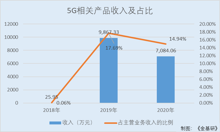 2018-2020年,利和兴5G相关产品收入分别为25.95万元、9,867.33万元、7,084.06万元,占当期主营业务收入的比例分别为0.06%、17.69%、14.94%。
