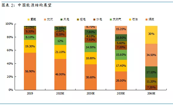 其次,《意见》做出了目标约束,其中的“量化指标”会成为未来新能源变革的“锚”。《意见》指出“2025年单位国内生产总值能耗比2020年下降13.5%;单位国内生产总值二氧化碳排放比2020年下降18%;非化石能源消费比重达到20%左右”、“2030年单位国内生产总值能耗大幅下降;单位国内生产总值二氧化碳排放比2005年下降65%以上;非化石能源消费比重达到25%左右”。与之前不同,本次政策使用了量化指标,不仅为全社会提供了更明确的“碳中和”指引,也进一步宣示了政策实现“碳中和”的决心。