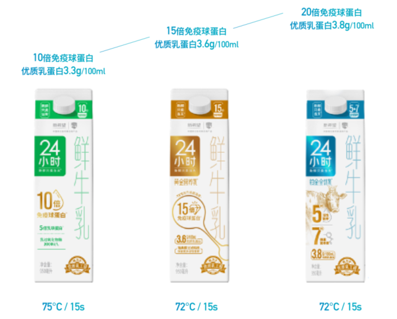 其中,24小时鲜奶、黄金24小时鲜奶是名副其实的“最大化保留活性营养”的鲜奶产品,堪称国内鲜奶的标杆之作。