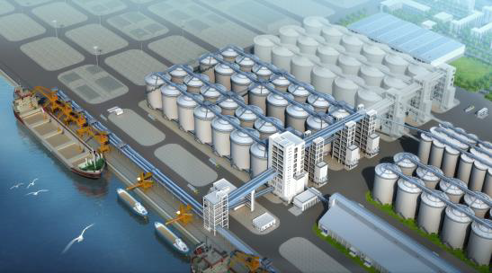 再以东莞市虎门麻涌港区新沙南散粮仓库三期工程电气设备采购及安装服务项目为例,该项目建筑面积5.08万平方米,建设内容为42万吨大直径筒仓(单仓28个,以7*2形式排列两组),配套计量塔,发放塔,泊位接收发放线,二期立筒仓相连栈桥及装卸工艺设备等,年周转换货物量约455万吨。该项目采用“储粮四合一升级新技术”,使空间信息与实时数据融为一体,进一步提高码头粮食接卸规模和效率,实现港区盈利能力的大幅提升。