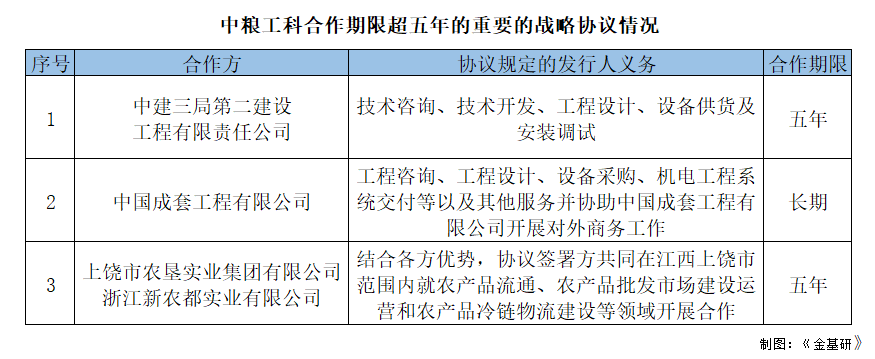 值得一提的是,截至2020年底,中粮工科已经与多家企业签署战略合作协议,未来其将发挥优势,与各企业在工程承包业务拓展方面展开合作,其中合作期限超五年的重要的战略协议情况如下: