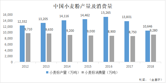 其三,面粉主要是指由小麦加工而成的产品。近年来,除2018年受上游小麦产量下降影响导致小麦粉产量下降以外,小麦粉产量均保持相对平稳。