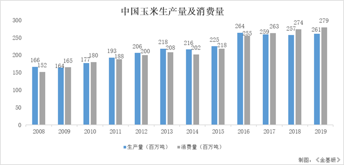 其四,2016年以来,中国玉米消费量保持稳定,2019年中国玉米消费量达到2.79亿吨,比2018年增加近500万吨,呈稳步增长态势。