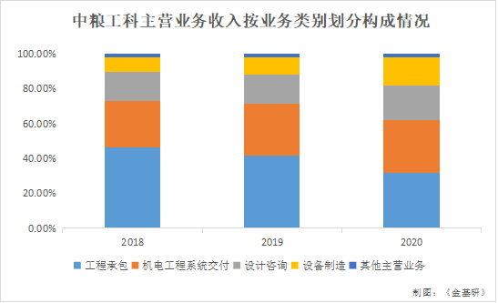 2018-2020年,中粮工科专业工程服务的销售收入分别为14.7亿元、16.91亿元、16.5亿元,占主营业务收入的比例分别为89.64%、87.76%、81.65%。