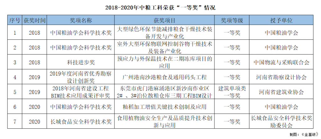 其中,中粮工科近三年荣获“一等奖”的奖项情况如下: