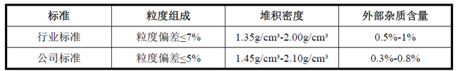 在产品质量标准制定方面,力量钻石自行组织制定的产品质量检测标准均高于国家标准和行业标准,严格控制产品质量以满足市场对高品质人造金刚石产品的需求,力量钻石的人造金刚石产品在粒度组成、堆积密度、外部杂质和冲击韧性等主要质量指标上均达到较高水平。力量钻石的人造金刚石产品质量检测标准与行业标准对比情况如下: