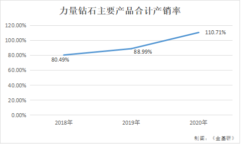 基于此,力量钻石主要产品产销率总体逐年提高,2020年已突破100%。