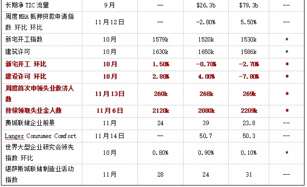 房地产市场购房意愿仍然较强,住房供给的补充仍需要时间。11月最新数据显示,NAHB住宅市场指数较上期持续上涨至83,美国房屋销售仍维持在高位。新宅开工不及预期,环比下跌0.7%;建设许可较上期明显改善,环比上涨4%。强劲需求的刺激下,美国新屋建造中在建的数量大幅上升,但房屋建造从在建到完工短时间内无法完成,后续美国房地产市场供给制约是否缓解仍需观察。