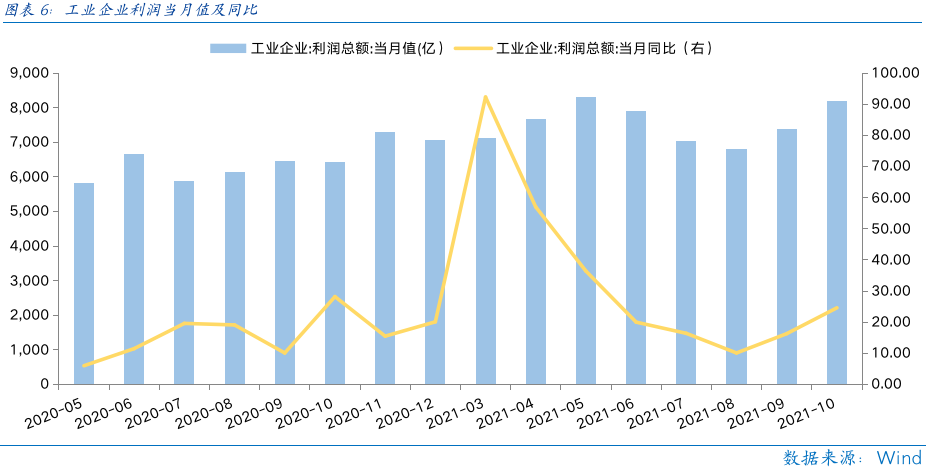 10月工业企业利润总额为8187.40亿,仅次于5月,同比增24.6%,环比增10.83%,数据表现亮眼。10月工业企业利润走强是在验证10月经济较9月低位企稳,有助于稳定市场对经济增长的预期。