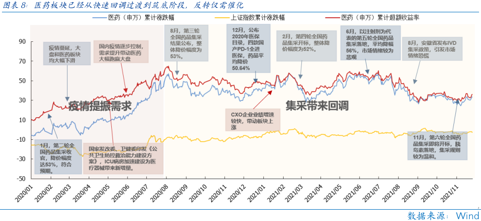 医药行业当前胜率已经较高,而赔率也在提高,配置价值在提升。首先医药作为“均值回归”板块,在持续回调后,投资胜率已经较高。其作为疫情受益板块,医药行业在去年3月疫情“发酵”初期就有极佳表现,在当前疫情再次“抬头”的情况下或许也有较强表现,值得积极关注。