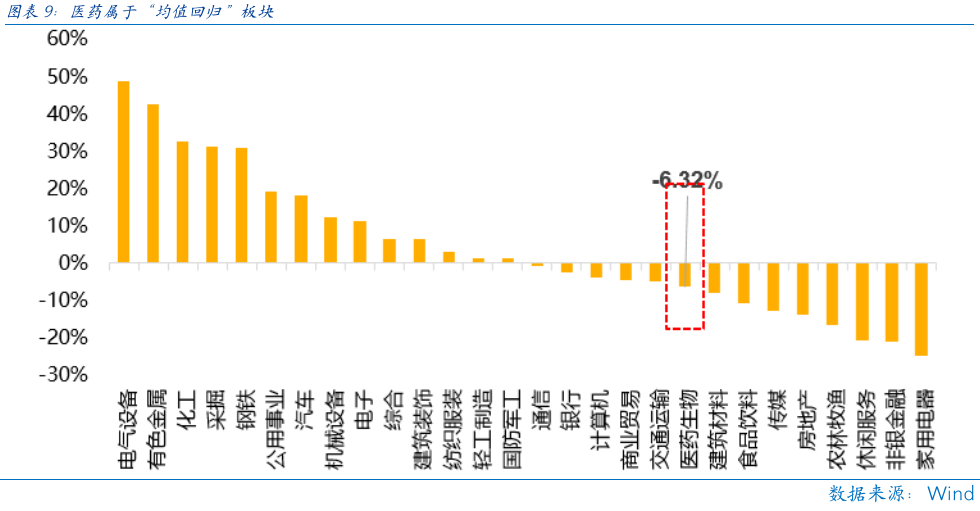 - ④、 从“均值回归”角度,今年表现较差的房地产及其产业链(家电、建材等行业)和消费医药等价值板块都有修复的机会,特别是医药行业短期超额收益存在扩大的可能性。