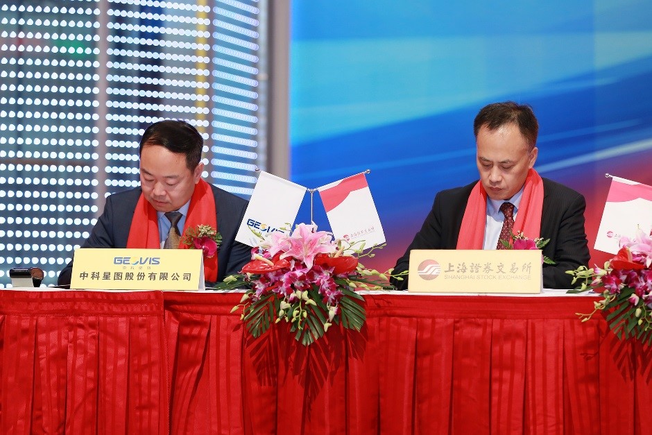 上海证券交易所副总经理阙波与中科星图股份有限公司总裁邵宗有签订《科创板上市协议书》。