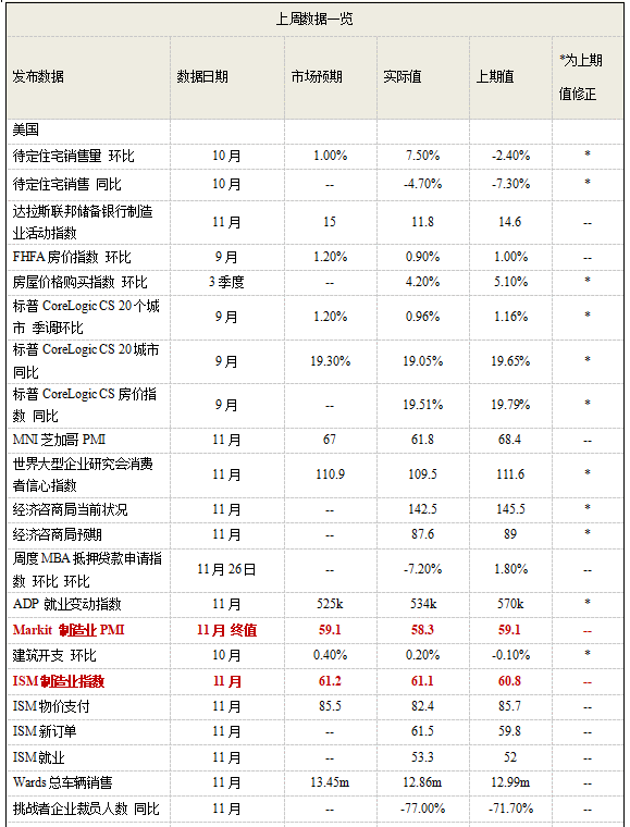 美国11月ISM制造业指数回升,Markit制造业PMI终值下调。美国11月ISM制造业指数61.1,略低于预期61.2,高于前值60.8。该数据表明,随着新订单的增加及工厂进一步复工,消费者对商品的弹性需求及稳健的商业投资正在共同支撑制造业复苏。