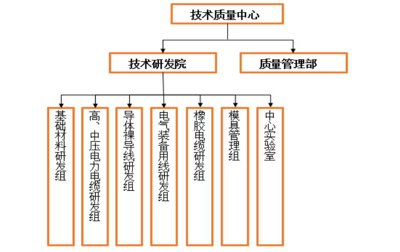 在研发机构设置上,中辰股份成立了技术质量中心,下设技术研发院和质量管理部。技术研发院又下设基础材料研发组、高压中压电力电缆研发组、导体裸导线研发组、电气装备用线研发组、橡胶电缆研发组、模具管理组、中心实验室等部门,分别承担各专业领域关键核心技术和相关新产品的研发工作。