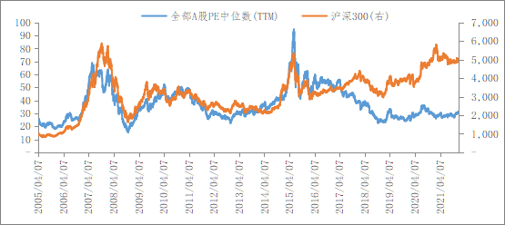 图1:全A股PE中位数仍位于历史低位
