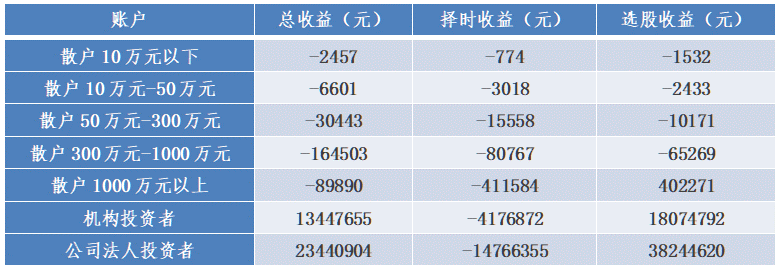 表1:上交所各类散户、机构投资者、公司法人投资者的投资收益对比