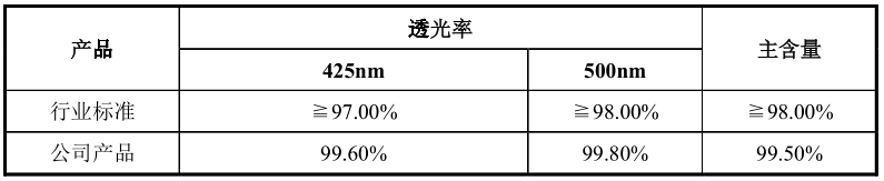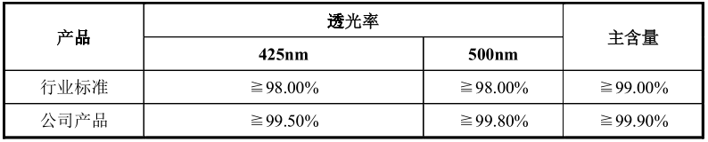 抗氧剂1010在测量425nm和500nm波长时透光率行业标准分别为≧96%、≧98%,主含量行业标准为≧94%;而风光股份通过采用自主创新合成的无锡催化剂,使其应用到抗氧剂1010的合成中,其在测量425nm和500nm波长时透光率分别为98.8%、99.7%,主含量为96.5%。其中透光率越高说明产品中杂质含量越低,含量越高说明产品纯度越高。