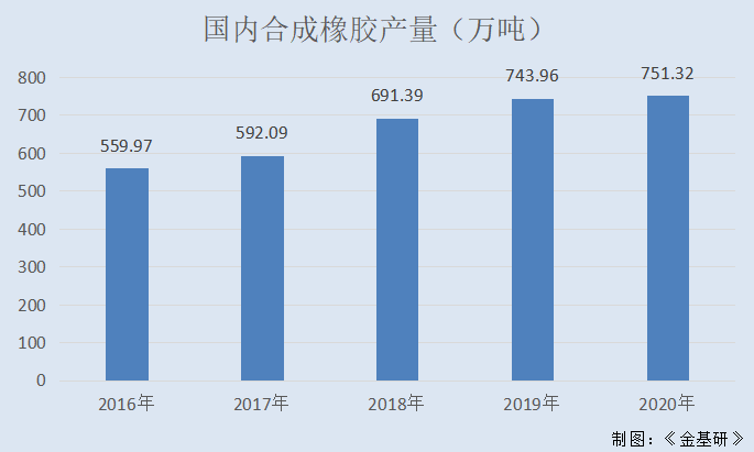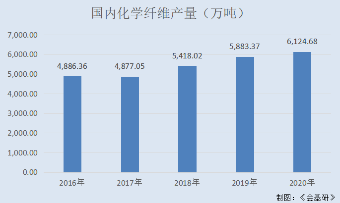 2016-2020年,国内合成橡胶产量分别为559.97万吨、592.09万吨、691.39万吨、743.96万吨、751.32万吨;国内涂料产量分别为1,899.8万吨、2,036.4万吨、1,759.8万吨、2,438.8万吨、2,459.1万吨;国内化学纤维产量分别为4,886.36万吨、4,877.05万吨、5,418.02万吨、5,883.37万吨、6,124.68万吨。