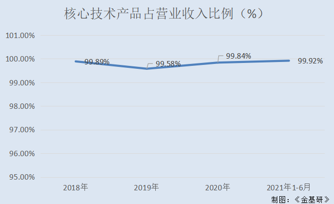 2018-2020年及2021年1-6月,风光股份核心技术产品占营业收入的比例分别为99.89%、99.58%、99.84%、99.92%。